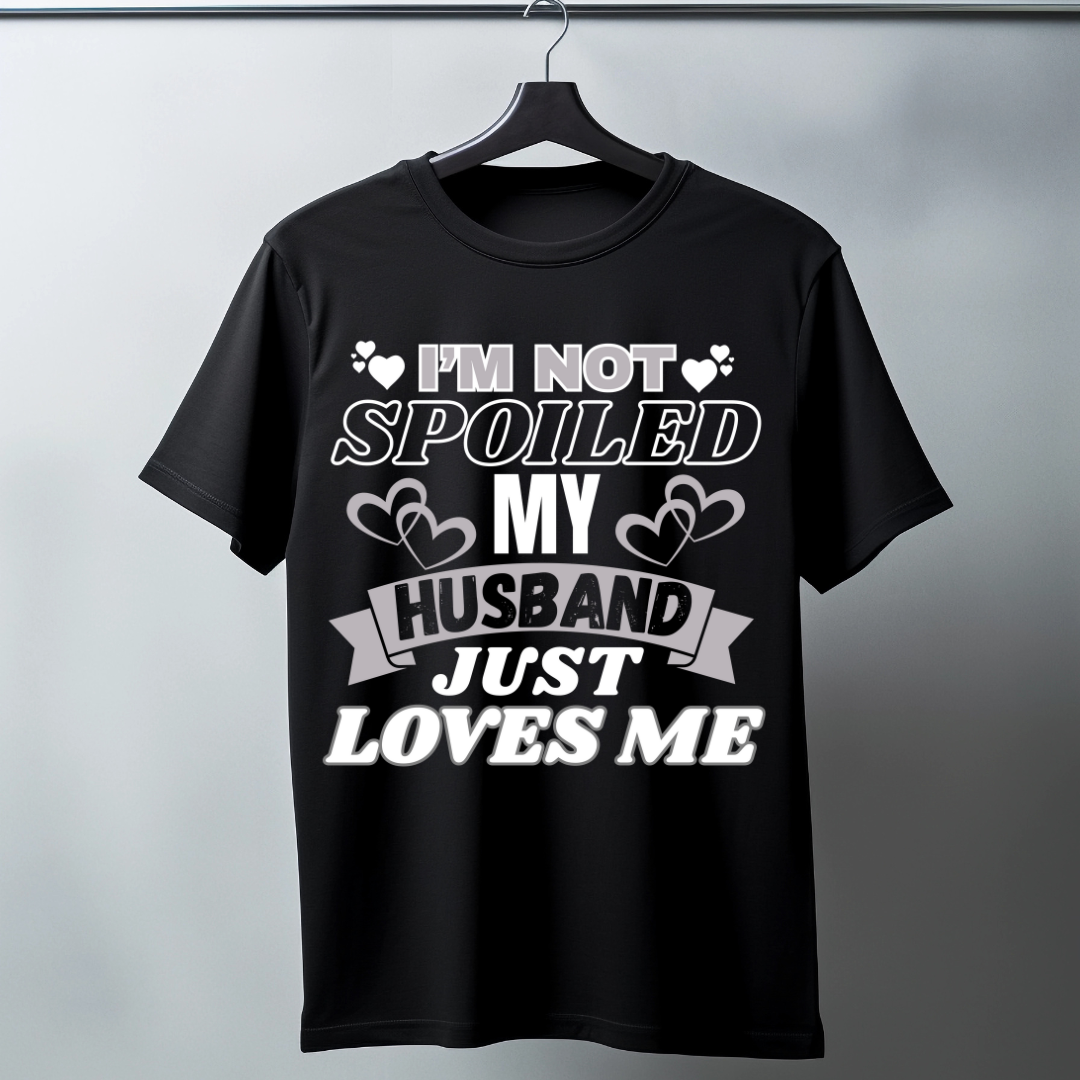 Show off your happily-ever-after in style with our “I’m Not Spoiled, My Husband Just Loves Me” t-shirt.